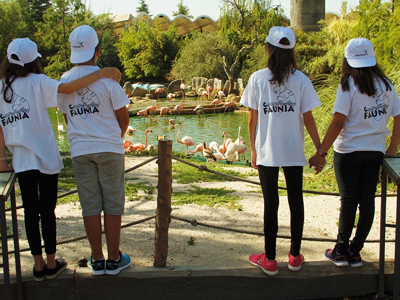 Los niños se organizan en grupos reducidos en función de la edad, acompañados en todo momento por un educador de Faunia.