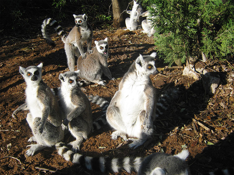 En el Bosque Africano se reproducen los hábitats en los que estos animales exóticos residen: condiciones de temperatura, humedad y luminosidad claves para que su calidad de vida no se vea alterada. Árboles de hoja caduca cubren nuestra comunidad de lémures que, tranquilamente, se cruzan por la senda del visitante. Más de 1.800 metros cuadrados sirven de hogar de tres tipos de lémur, del centenar existente en su patria de origen: el Lémur de cola anillada, el rufo rojo y el Lémur de frente blanca.